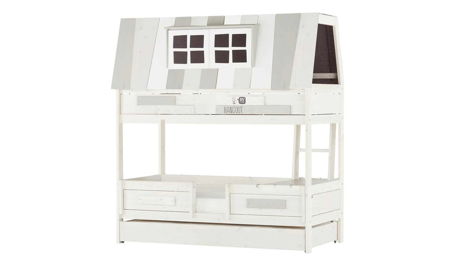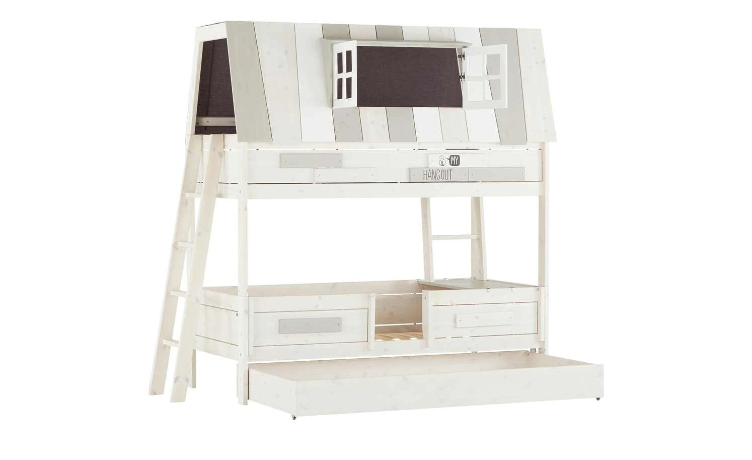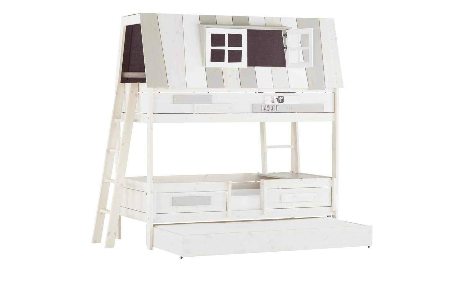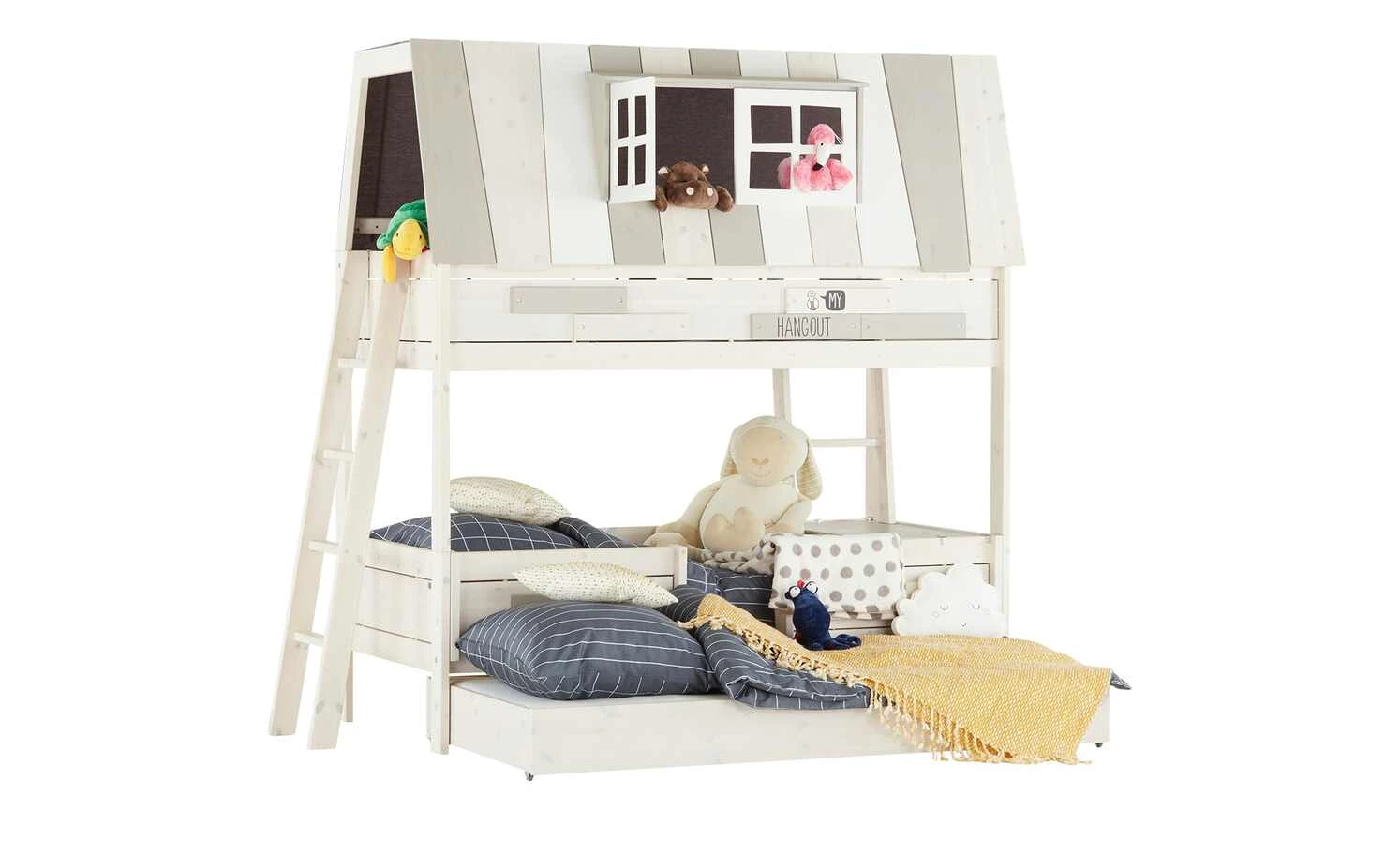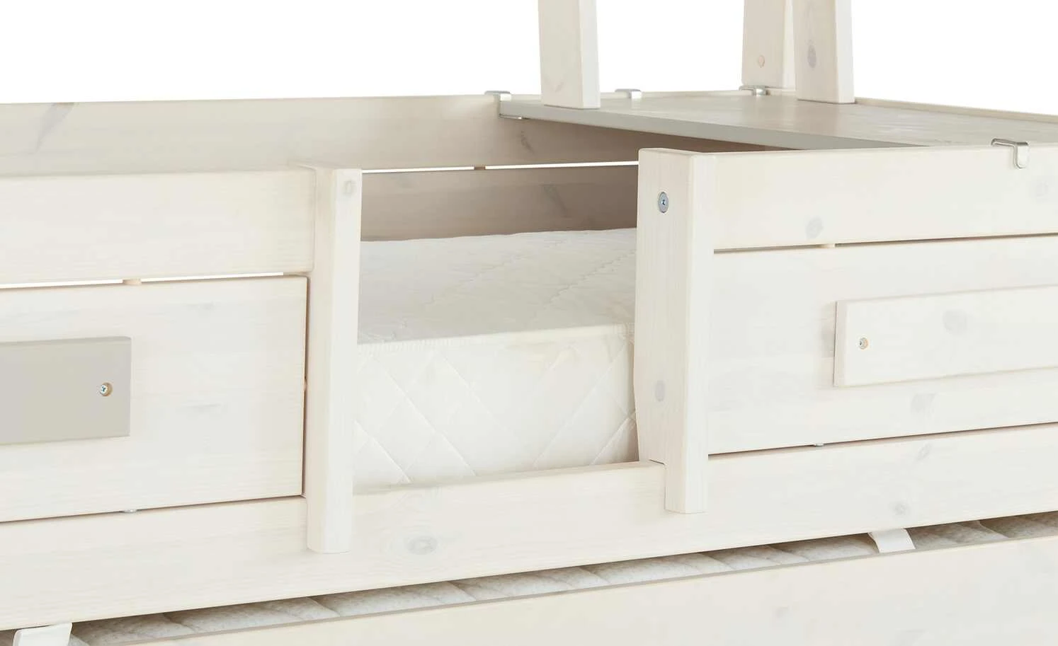 - Lieferumfang / mitgeliefertes Zubehör: Basisbett inklusive Rollrost, Oberteil für Hangout, Absturzsicherung kurz, kleine Leiter mit 2 Stufen, Dachkonstruktion, Dachbretter mit Fenster und Stoff
