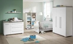 Das kleine Anstellregal Mara wird seitlich an den Kleiderschrank der Serie gestellt – wahlweise links oder rechts, wie Sie mögen. Das Regal hat eine schräge Dachhälfte und passt so auch optisch zum Strandhüttenstil des Schrankes. Alle Oberflächen des Regals sind weiß lackiert. Mara verfügt über drei geräumige Regalfächer. Spielzeug oder Kinderbücher finden hier Platz.