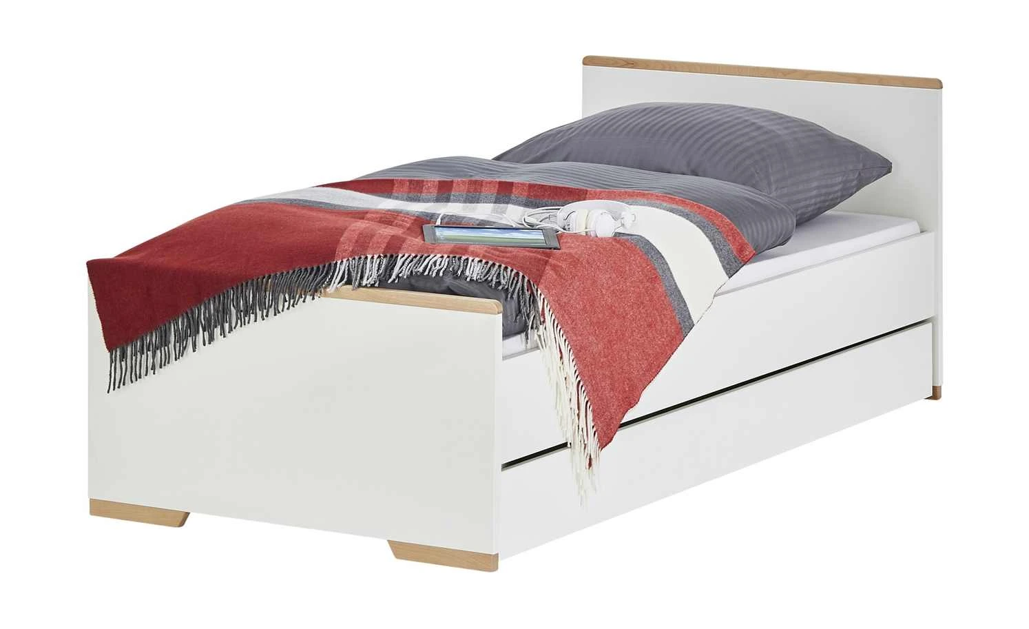 - nicht im Lieferumfang enthalten: Matratze, Bettschubkasten, Rausfallschutz