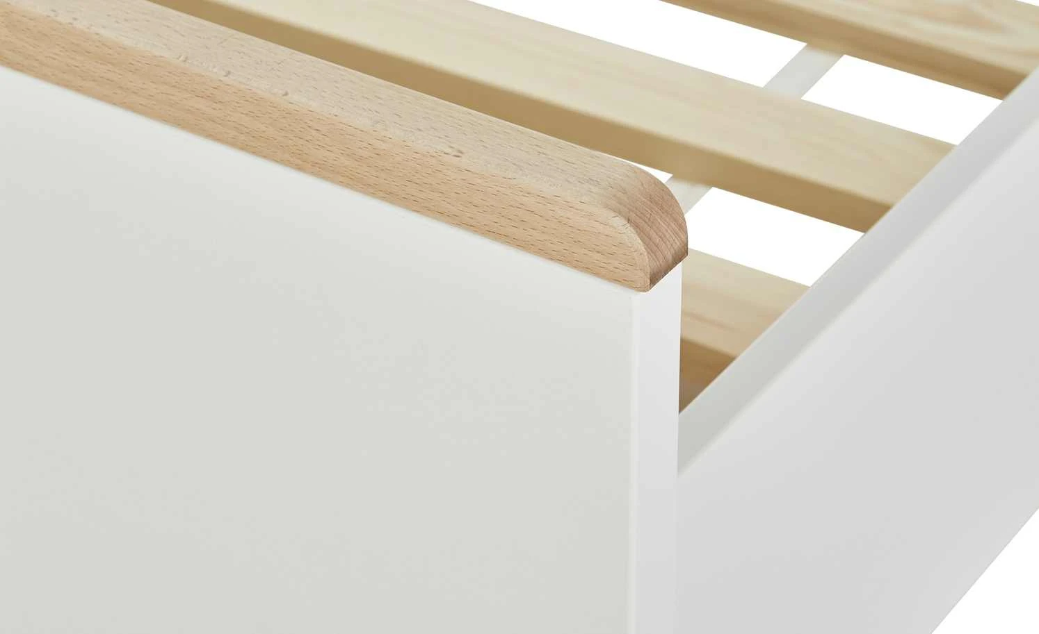 - Mehr zum Material: Bettseiten Holzwerkstoff lackiert, laminierte Flächen mit gelaserten Kanten, Buche massiv, lackiert
