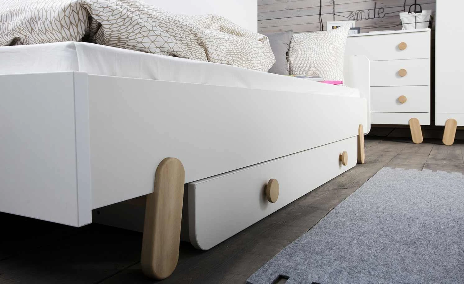 - nicht im Lieferumfang enthalten: Bettkasten, Textile Auflage für Bettkasten, Matratze, Rausfallschutz