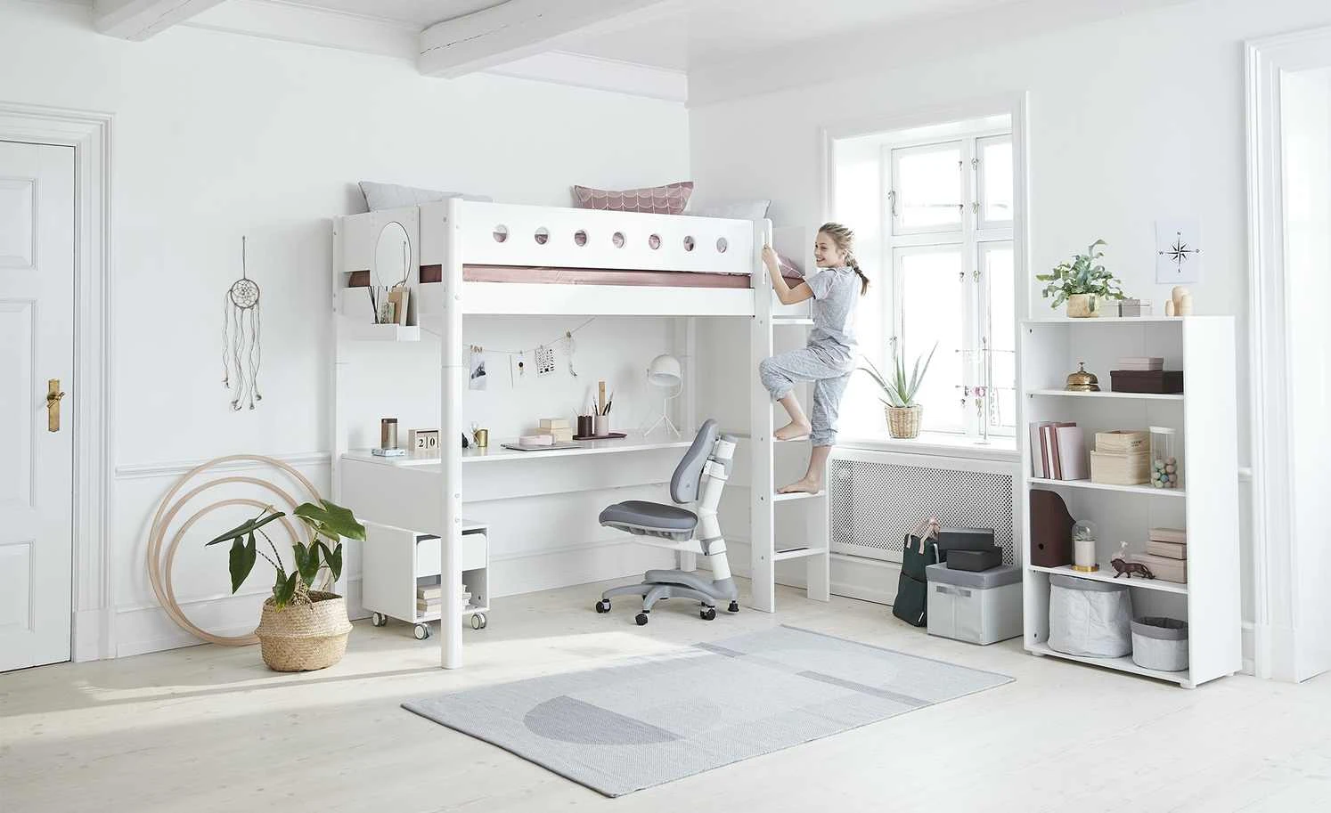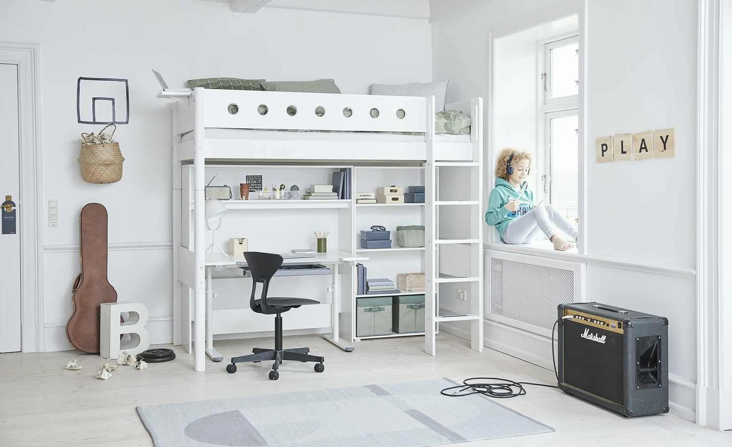 Flexa White ist ein Hochbett für das Kinder- und Jugendzimmer. Dank der erhöhten Liegefläche ergibt sich viel Stauraum unter dem Bett. Das Hochbett wird inklusive einer geraden Leiter geliefert. Flexa White ist hochwertig gearbeitet – und mit dem GS-Siegel ausgezeichnet und vom TÜV Süd zertifiziert.
