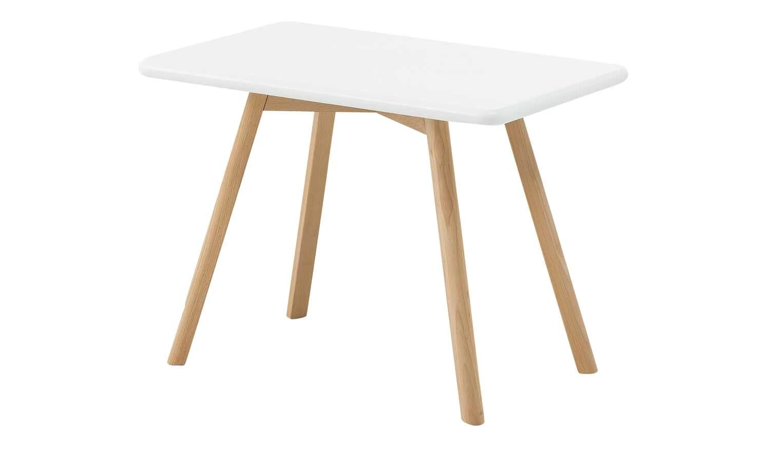 In schickem Scandi-Look präsentiert sich der Kindertisch Krümel. Schräg zulaufende Massivholzfüße aus geöltem Buchenholz tragen eine lackierte Tischplatte. Hier ist genug Platz für Mal- und Bastelsachen. Die pflegeleichte Tischplatte besitzt abgerundete Kanten und ist in Weiß und Grau erhältlich. Auch bei der Tischplattenform haben Sie die Wahl zwischen rechteckig, quadratisch und rund. So passt der Kindertisch Krümel in zahlreiche Kinderzimmer-Stile.