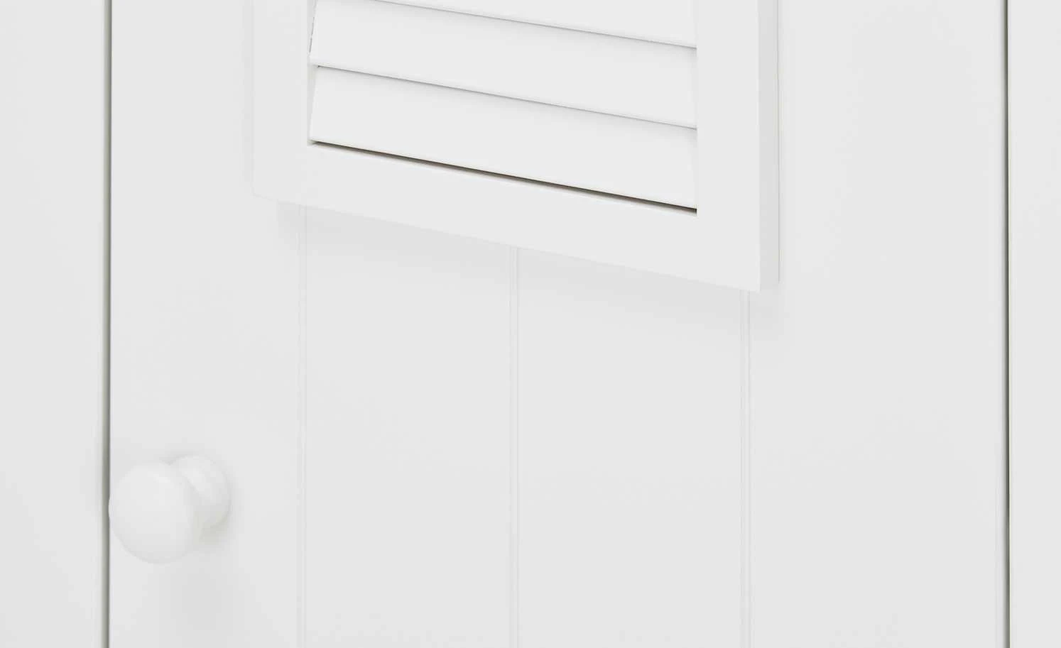 - Mehr zum Material: Korpus und Front aus MDF, lackiert; Lamellen aus Massivholz, lackiert; Einlegeböden aus MDF, melaminbeschichtet