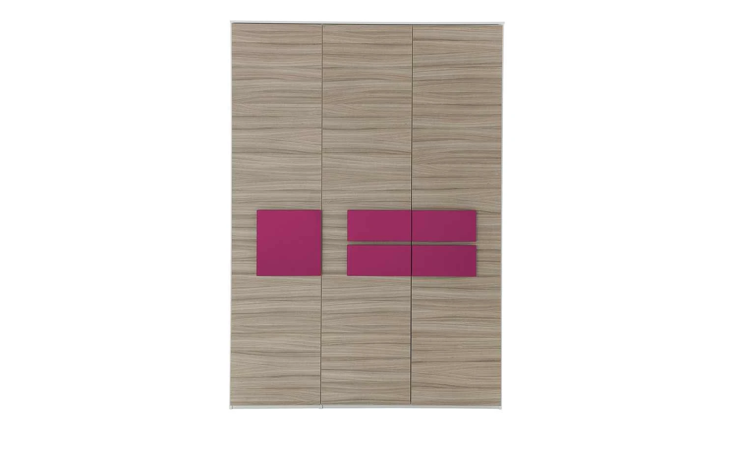 Für Ordnung im Kinder- und Jugendzimmer sorgt der Kleiderschrank Holly. Er ist mit drei Türen ausgestattet – und viel Stauraum dahinter. Der Schrank hat sechs kleinere und zwei große Fächer. Die Kleiderstange können Sie zum Aufhängen von Kleidung nutzen. Neben seiner Praktikabilität, ist der Schrank auch optisch attraktiv. Die quadratischen und rechteckigen Frontabsetzungen in Kontrastfarbe setzen Akzente. Genial: Gleichzeitig dienen sie als Griffe.