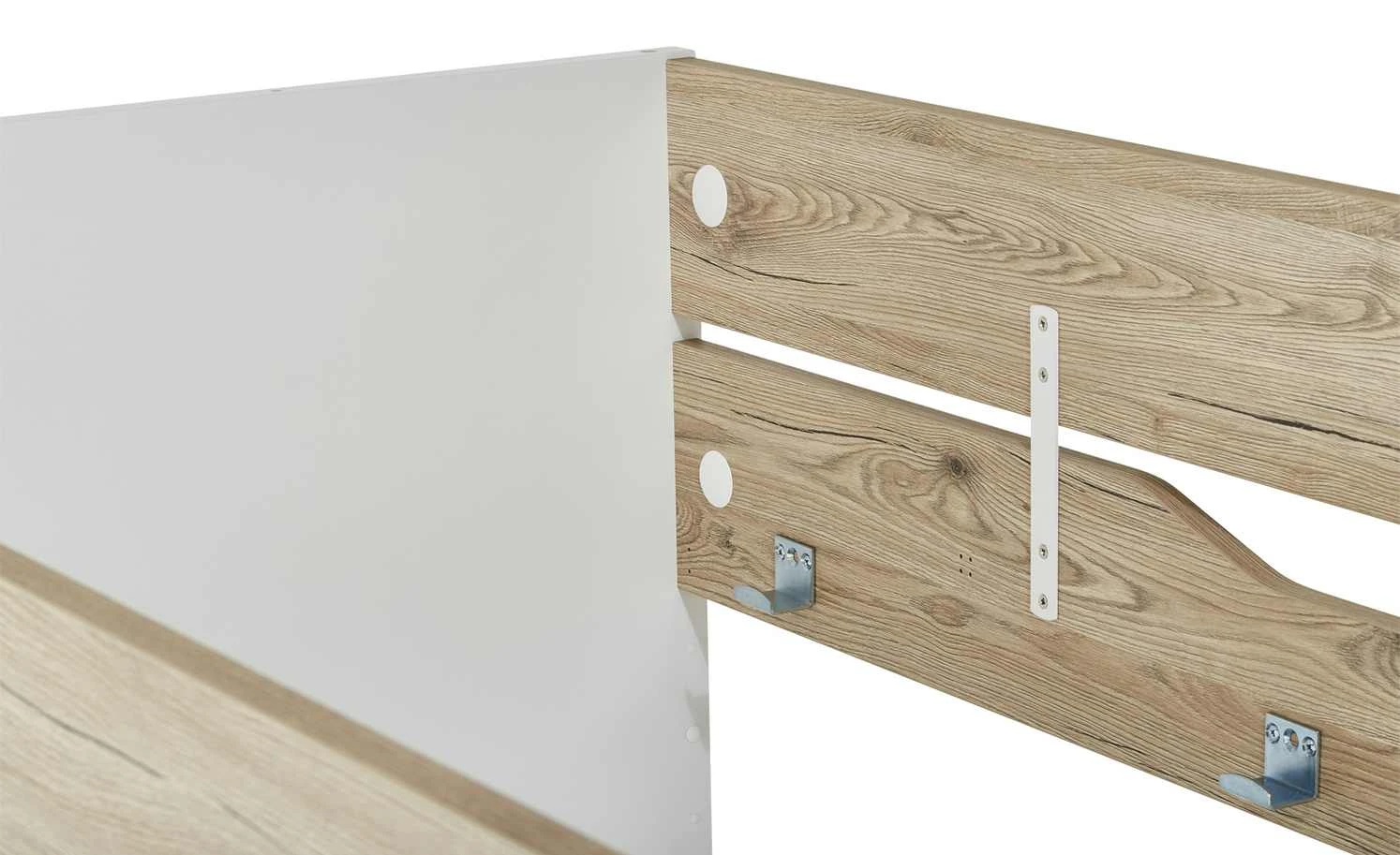 - Mehr zum Material: Oberfläche Bettgestell: melaminbeschichtet, Kopf- und Fußteil: Sandwichplatten mit HDF Deckschicht, lackiert