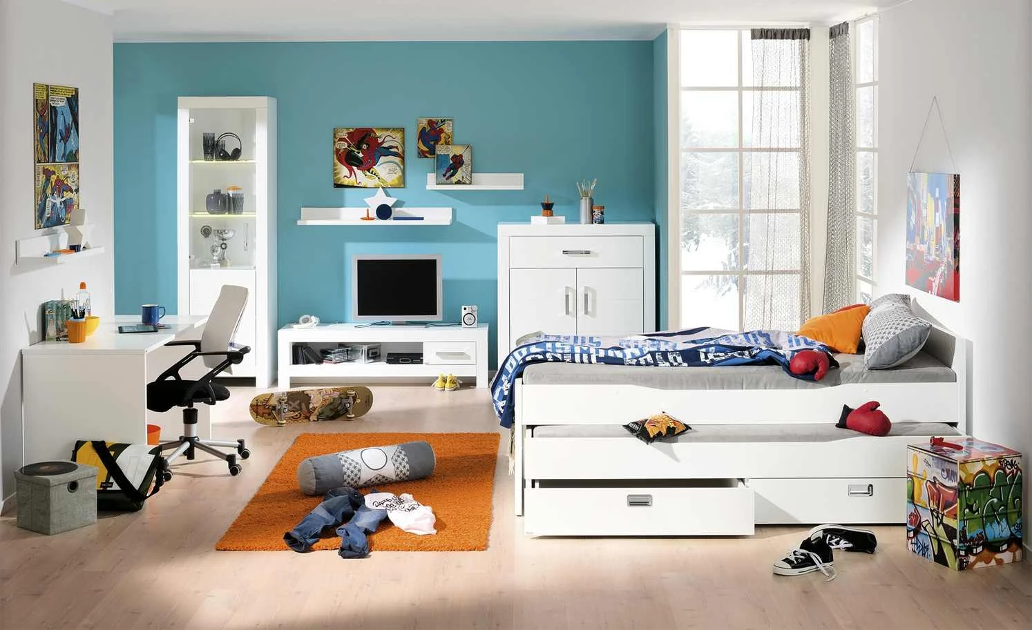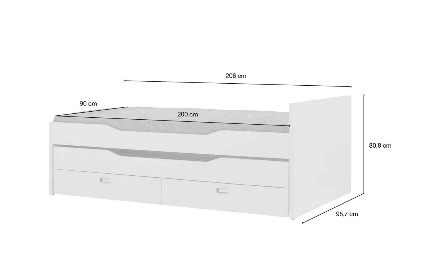 - nicht im Lieferumfang enthalten: ohne Lattenrost, Matratze, Unterschiebebett und Schubkästen