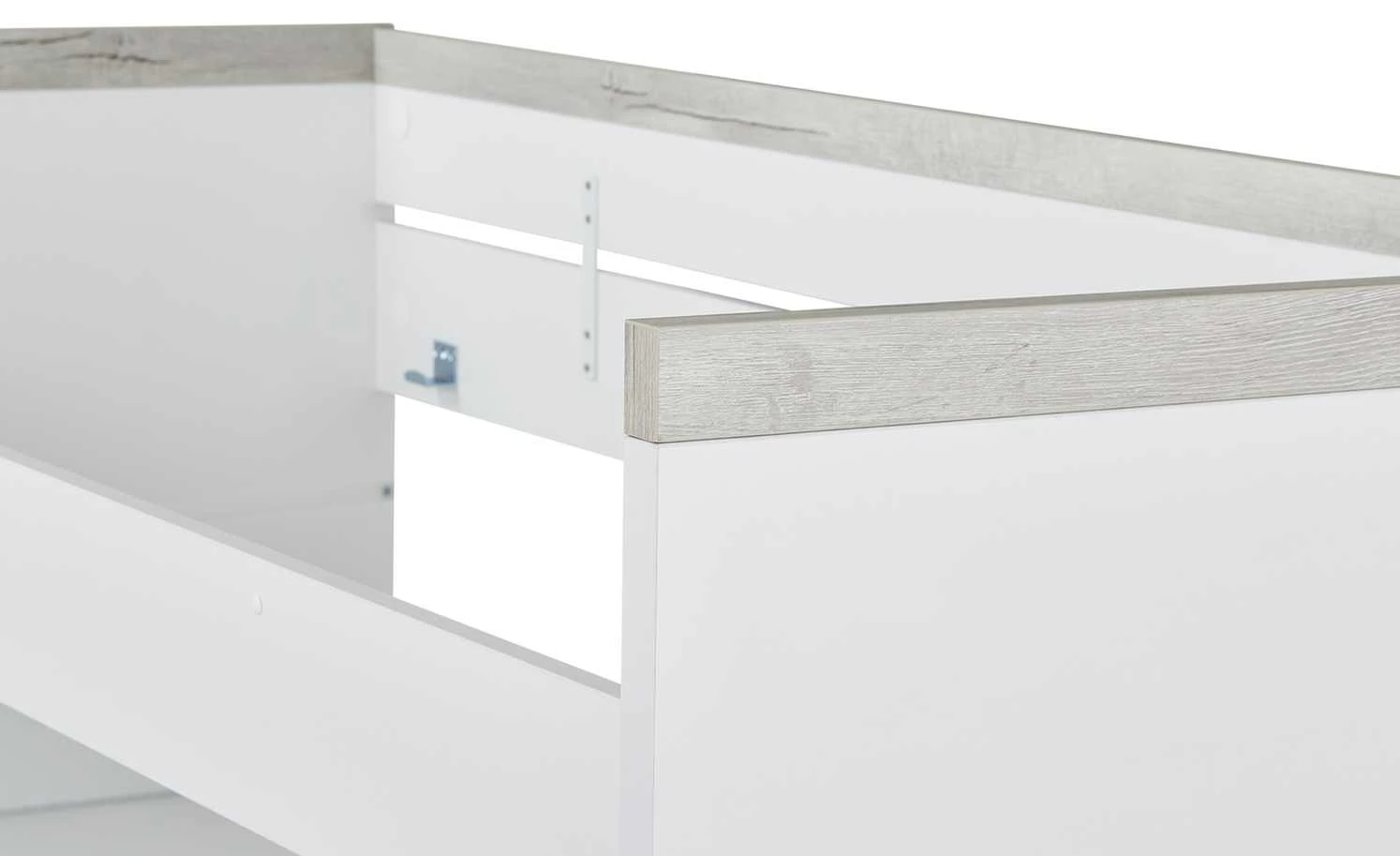 - Material Bettgestell: Holzwerkstoff beschichtet