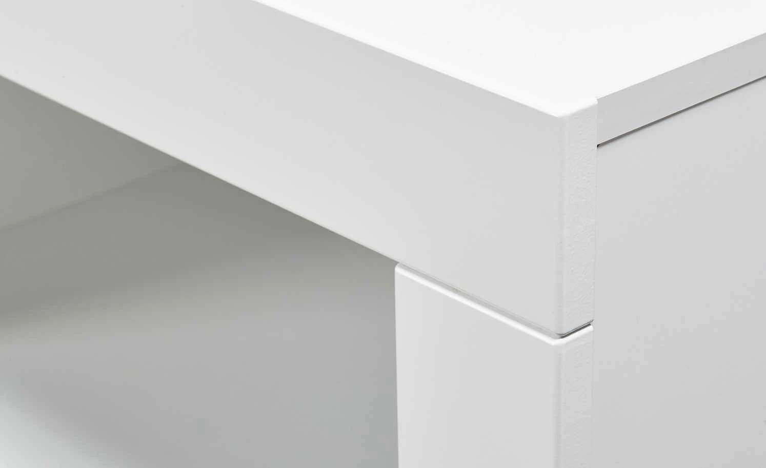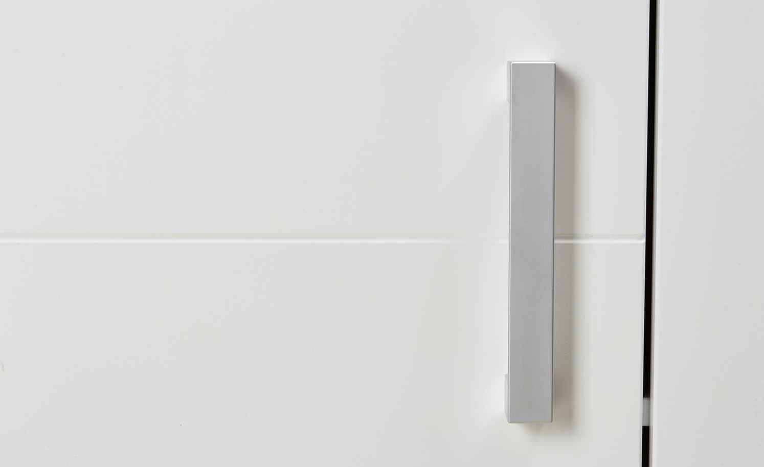 - Neutrale Farbe in Kreideweiß mit Griff in Chromoptik