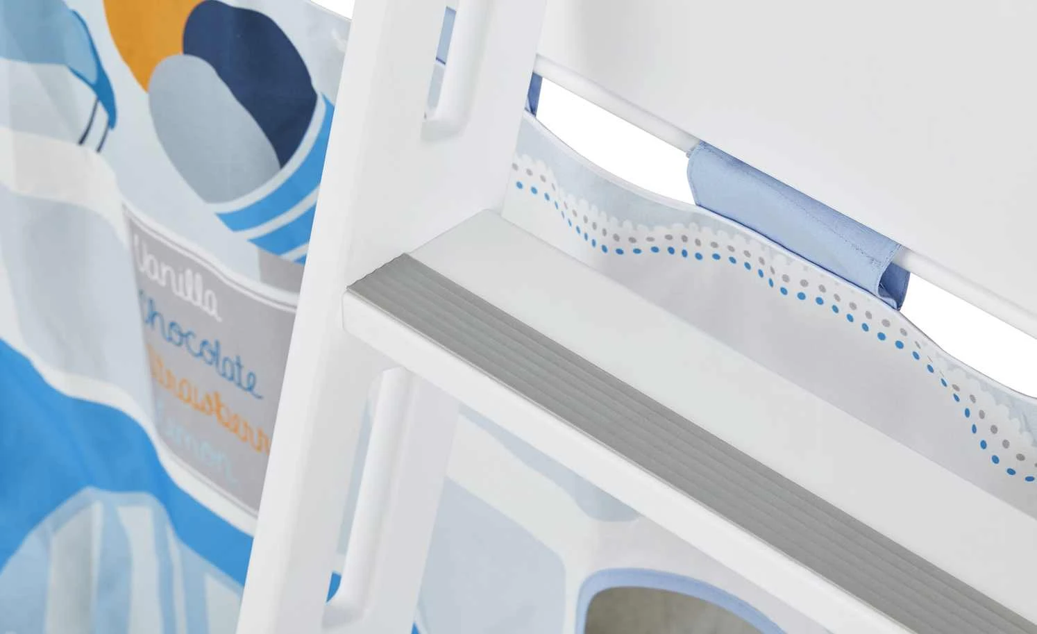 - nicht im Lieferumfang enthalten: Lattenrost und Matratze, Textilien, Antirutschstreifen für Leiter