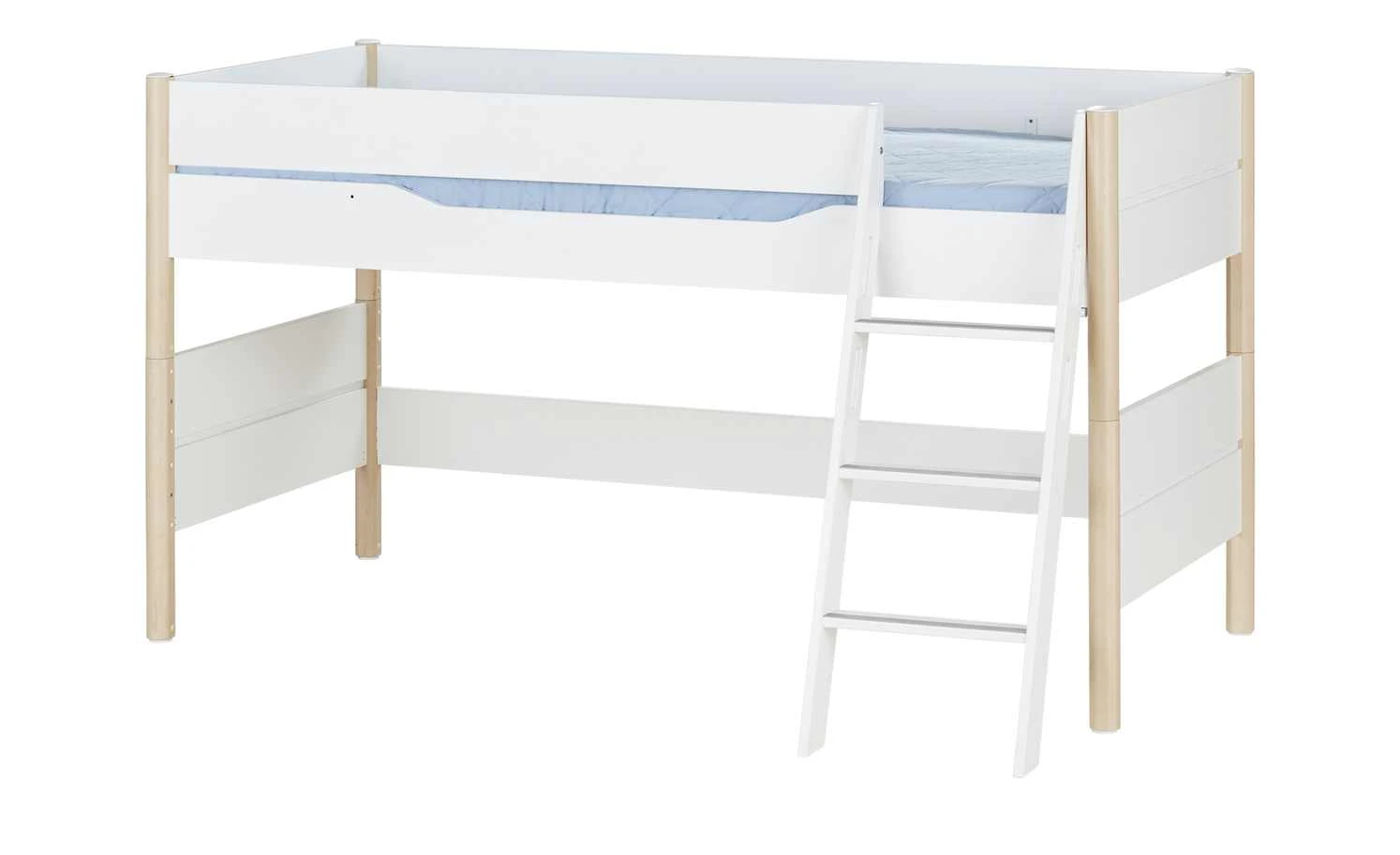 - Mehr zum Material: Pfosten: Birke massiv lackiert, Leiter: Birke massiv, lackiert, Bett- und Schutzseiten: Holzwerkstoff beschichtet