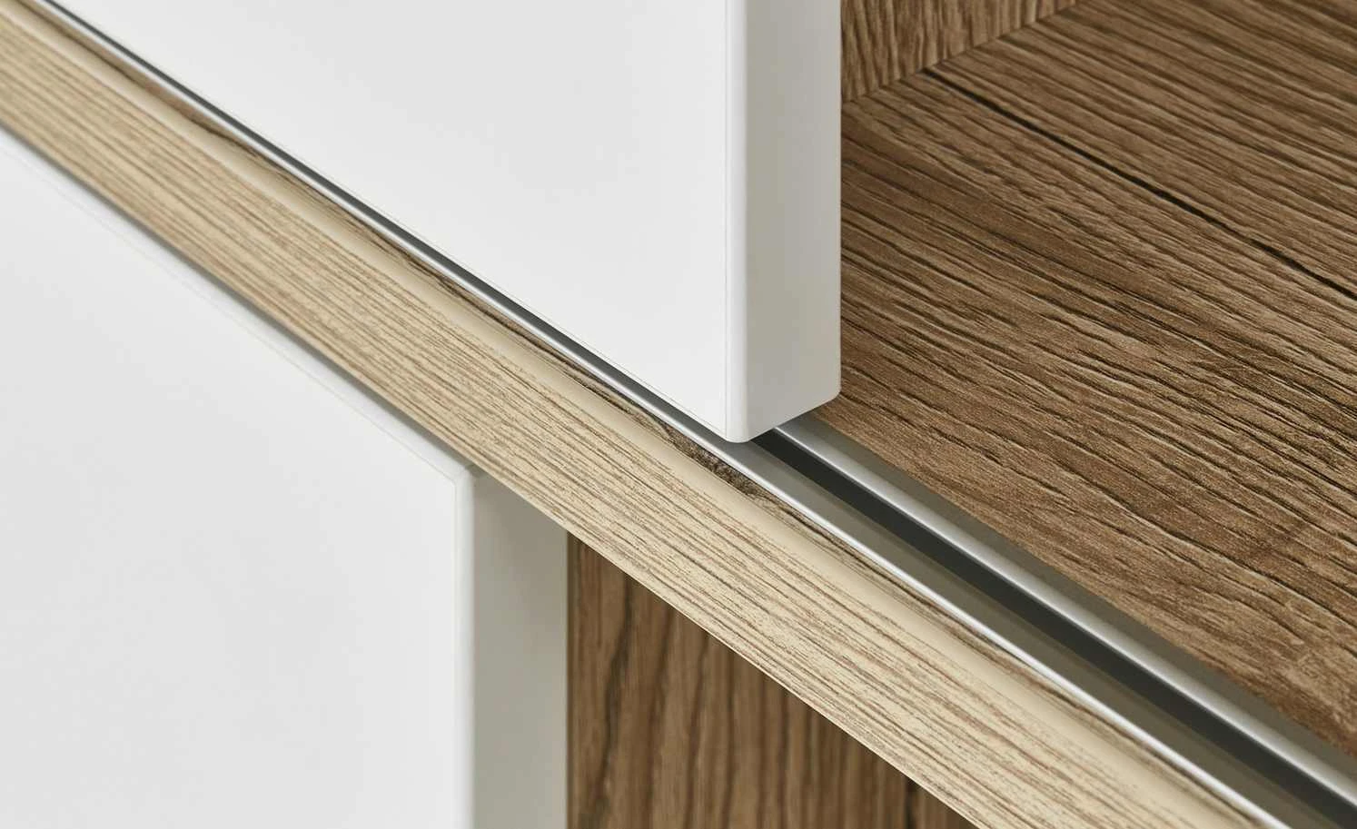 - Holzoptik mit kreideweißer Front