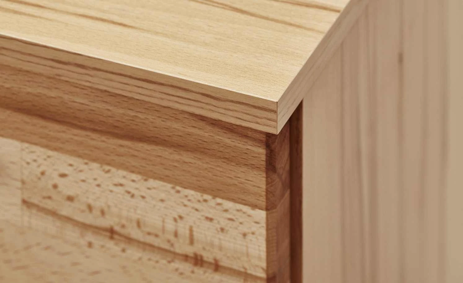 - Mehr zum Material: Fronten Massivholz stabverleimt, Oberfläche Korpus: Kunststoff Folie