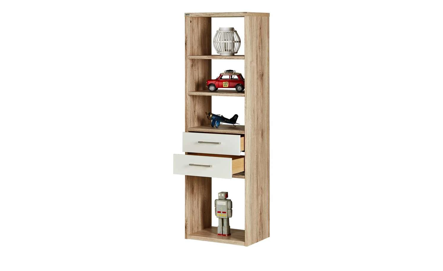 Bücher, Spielzeug oder Deko – all das passt in das Standregal Arne. Das Regal hat fünf große Fächer, die befüllt werden können. Durch die offene Gestaltung ohne Rückwand, können Sie das Regal auch als Raumteiler nutzen. Arne ist in Eiche San Remo (Nachbildung) gehalten und passt so gut zu den anderen Möbeln der Jugendzimmerserie. Sie können Arne mit den separat erhältlichen Schubfächern ergänzen.