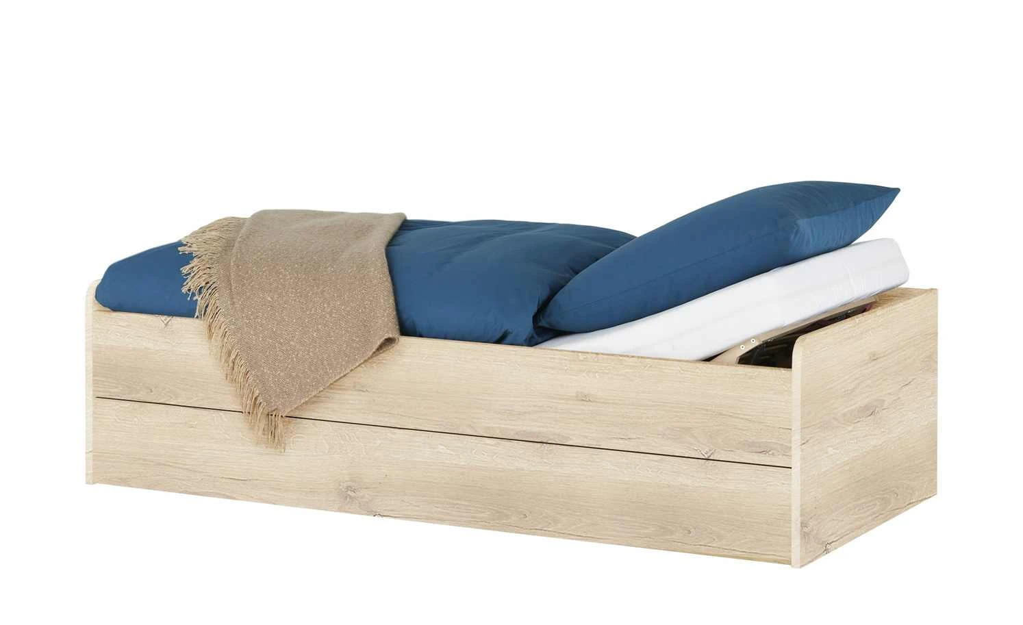 - Ausstattung/Funktion: Bettkasten, manuelle Kopfteilverstellung
