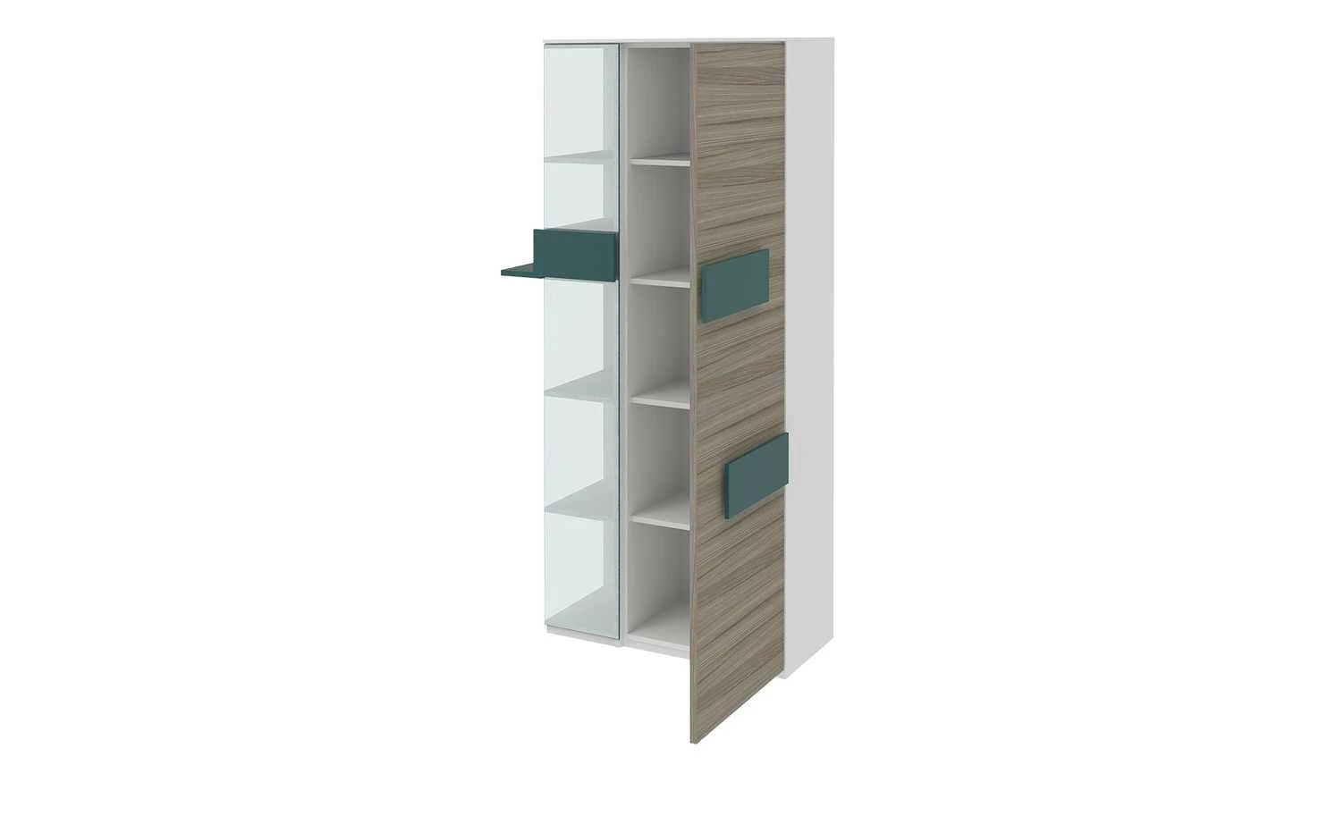- Mehr zu Ausstattung / Funktion: Drehtür mit Metall-Topfbandscharnieren mit 110 Grad Öffnungswinkel, 3 Böden hinter der Glasfront, Regal mit Geheimfach, Front: 19 mm stark mit ABS-Kante, Korpus: 16 mm stark mit Dekorkante, 4 Böden hinter der Tür
